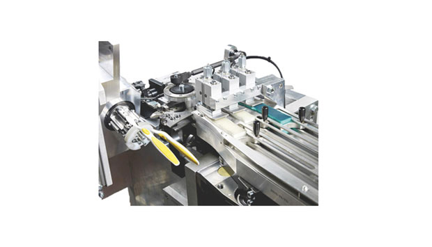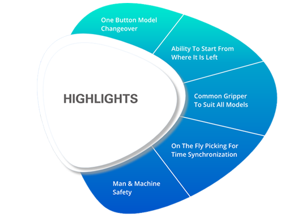 Once the tooth brush handles reaches the last teeth position of the walking beam, Gripper picks the Tooth brush handle and places in the Tufting machine magazine and returns to its original pick position at a very high speed of 1400 RPM in less than two seconds. Servo motor with customized belt mechanism is used.